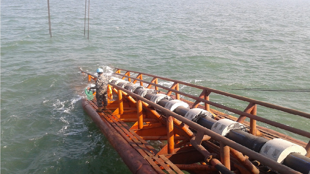 我們承攬了蓬萊跨海飲水工程,該工程海洋水文條件復雜,海水腐蝕、沖擊強烈。東宏采用內外一體式焊接,管道定尺25米,以其優越的抗交變載荷能力及系統的穩定性,為跨海飲水工程保駕護航。解決了海島居民長期飲用雨水和咸水的問題,東宏鋼絲網骨架聚乙烯復合管道也經受住了深海長期承受內外高壓的技術難題。