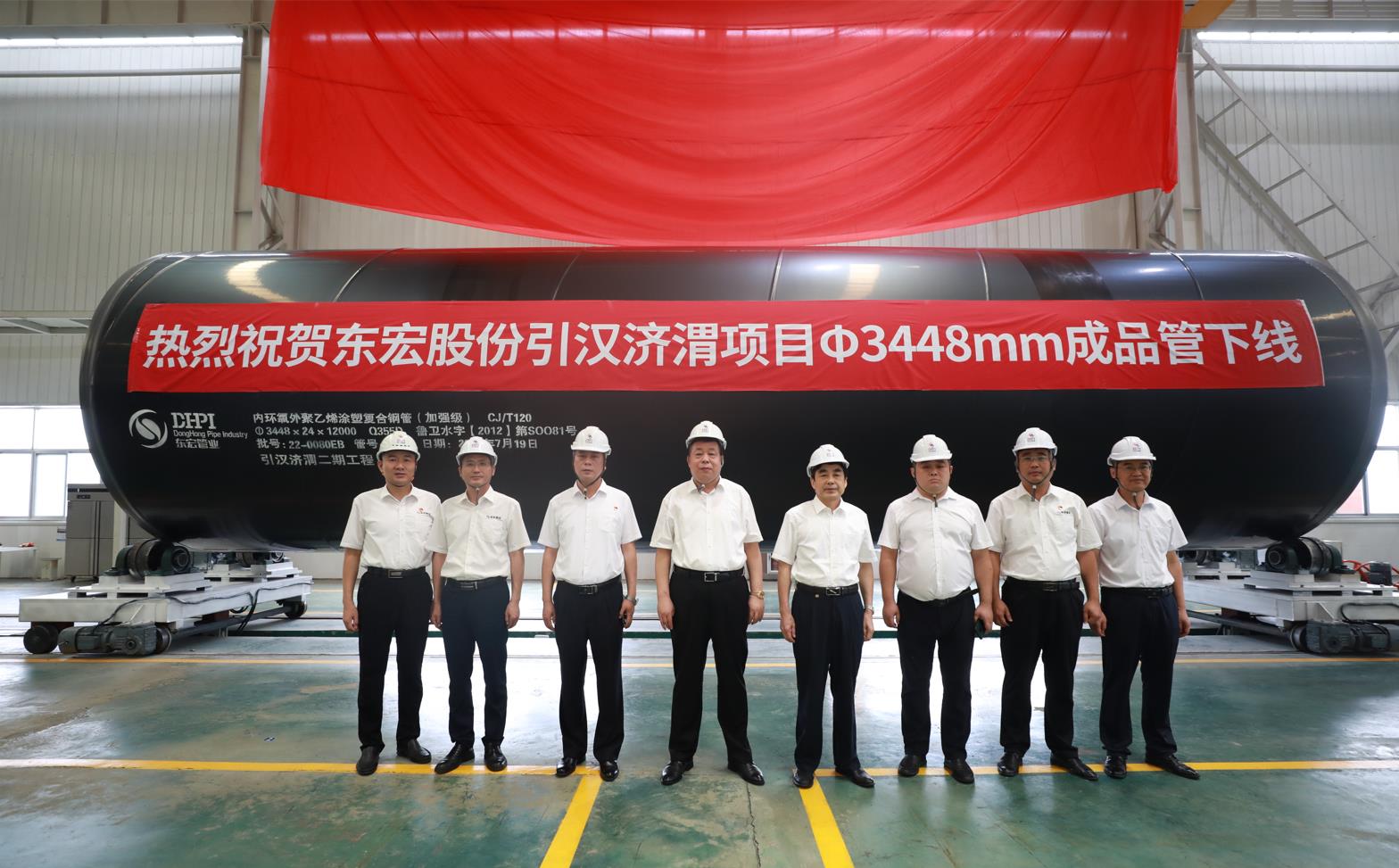 隨后,副總裁孔智勇、薛春德共同為引漢濟(jì)渭項(xiàng)目首根Φ3448mm成品管揭幕。