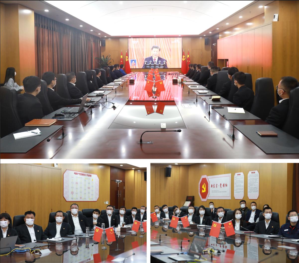公司各部門員工分別在會議室、辦公室通過多種形式同步觀看。