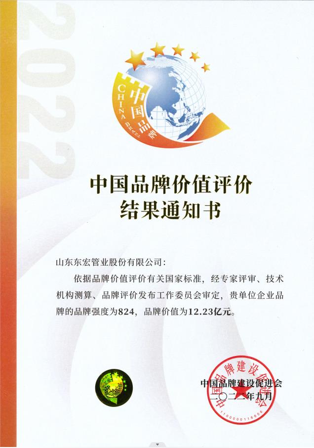 為貫徹落實國務院“推動形成具有中國特色的品牌機制評價機制”要求,培育更多優秀中國品牌,新華社、中國品牌建設促進會和中國資產評估協會聯合主辦了“2022年品牌價值評價”活動,經過多輪測評,東宏股份以品牌強度824,品牌價值12.23億元的好成績榮登榜上。