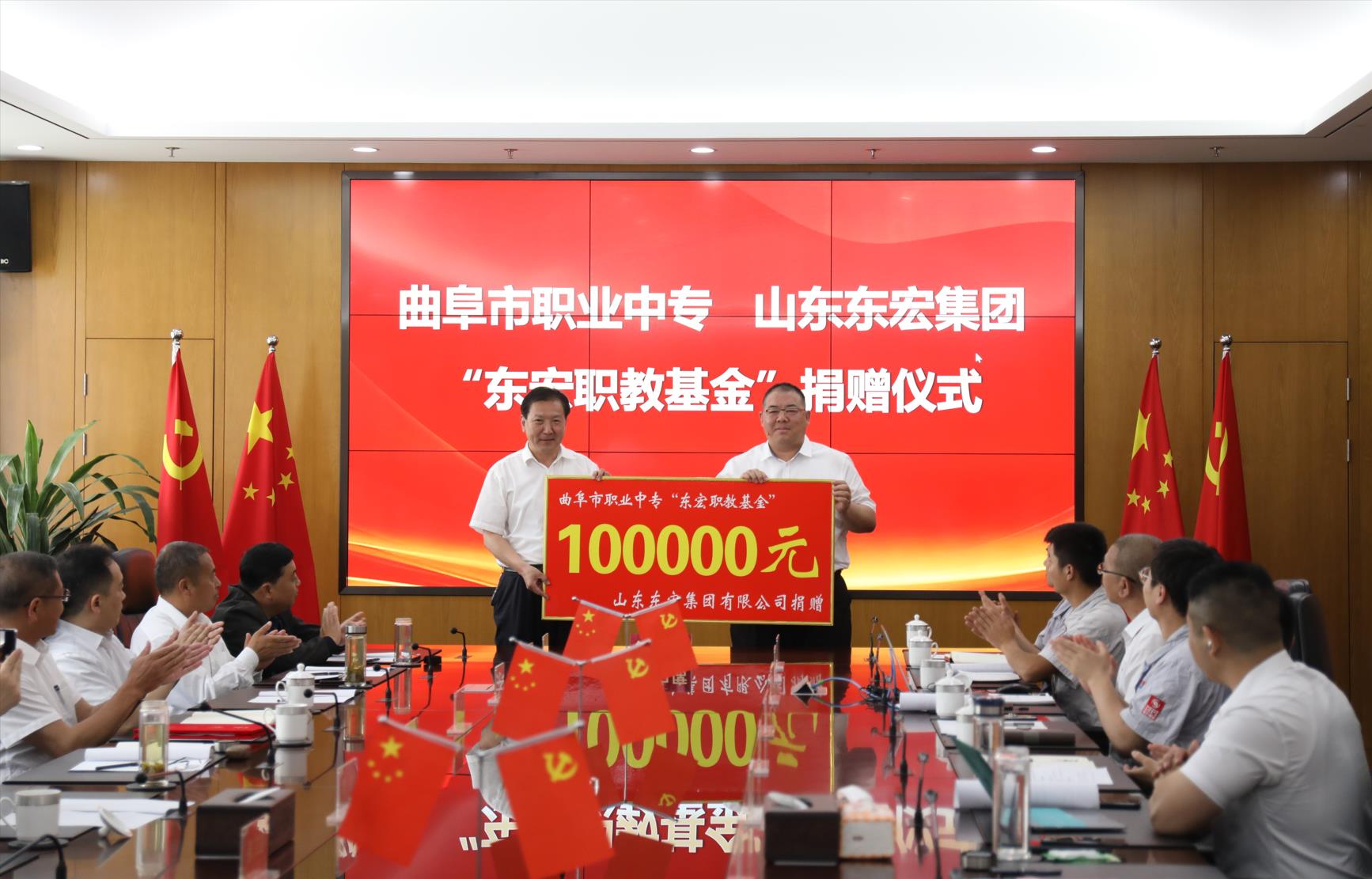 5月29日下午,曲阜市新能源新材料產(chǎn)教融合共同體成立大會(huì)暨“東宏職教基金”捐贈(zèng)儀式在公司研發(fā)中心會(huì)議室舉行。曲阜市委常委、組織部部長(zhǎng)張衛(wèi)國(guó),曲阜市人民政府副市長(zhǎng)周凱,市委教育工委常務(wù)副書記、教體局黨組書記、局長(zhǎng)宮同文,曲阜市職業(yè)中專黨委書記王玉棟,山東東宏集團(tuán)有限公司黨委書記、山東東宏管業(yè)股份有限公司總裁倪奉堯,山東東宏集團(tuán)有限公司監(jiān)事會(huì)主席周新硯,山東東宏管業(yè)股份有限公司監(jiān)事會(huì)主席馬伯群等人參加儀式。
