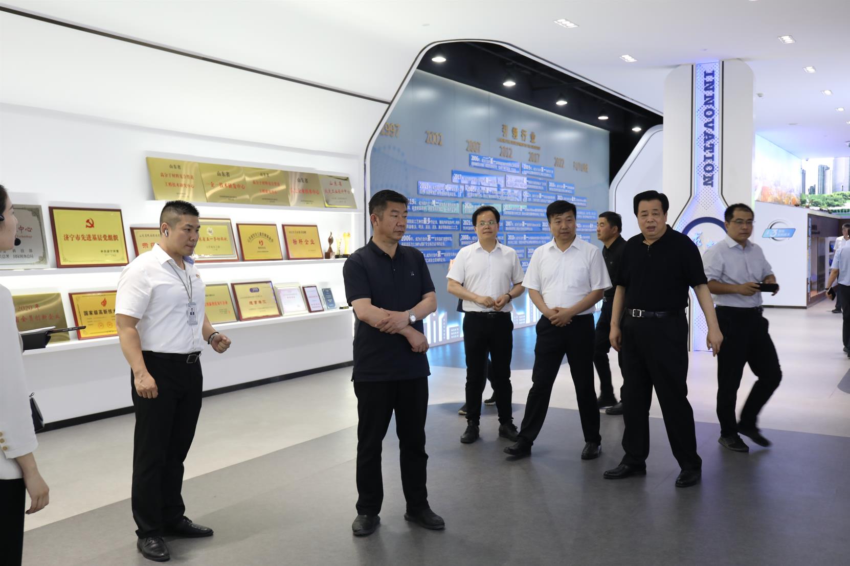 夏書記一行參觀了公司智慧展廳,董事長向考察團一行介紹了公司發展歷程、產業規劃及戰略布局,重點對公司產品研發、國家工程案例服務進行了介紹。