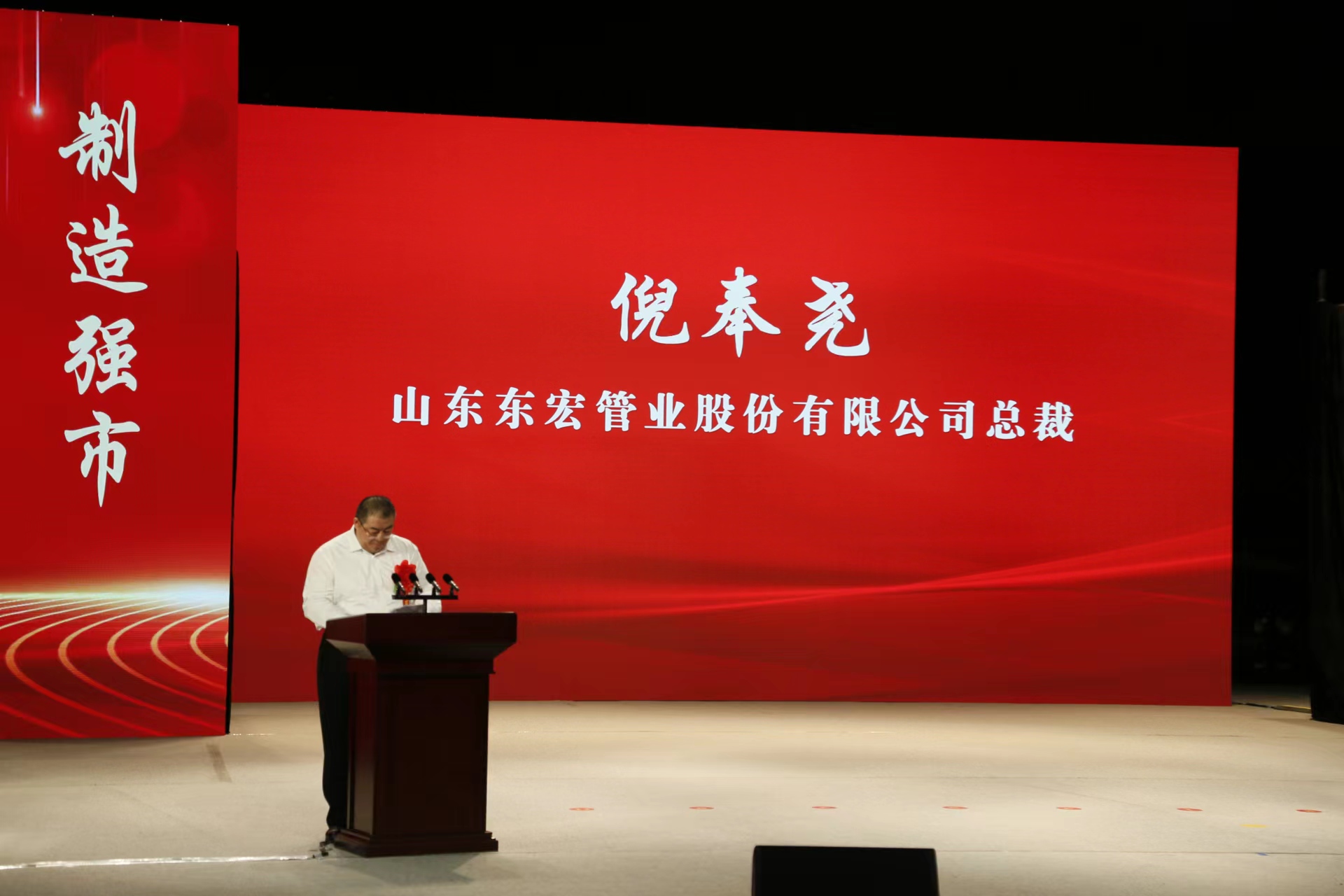 6月15日上午,曲阜市產業高質量發展暨人才科技創新大會在曲阜市孔子國際會展中心舉行,市委書記李麗,市委副書記、市長崔加清等有關領導出席會議。東宏股份榮獲“創新創優領軍企業”榮譽;公司副董事長、總裁倪奉堯被授予“企業攀登·功勛企業家”榮譽稱號,并作代表進行發言。