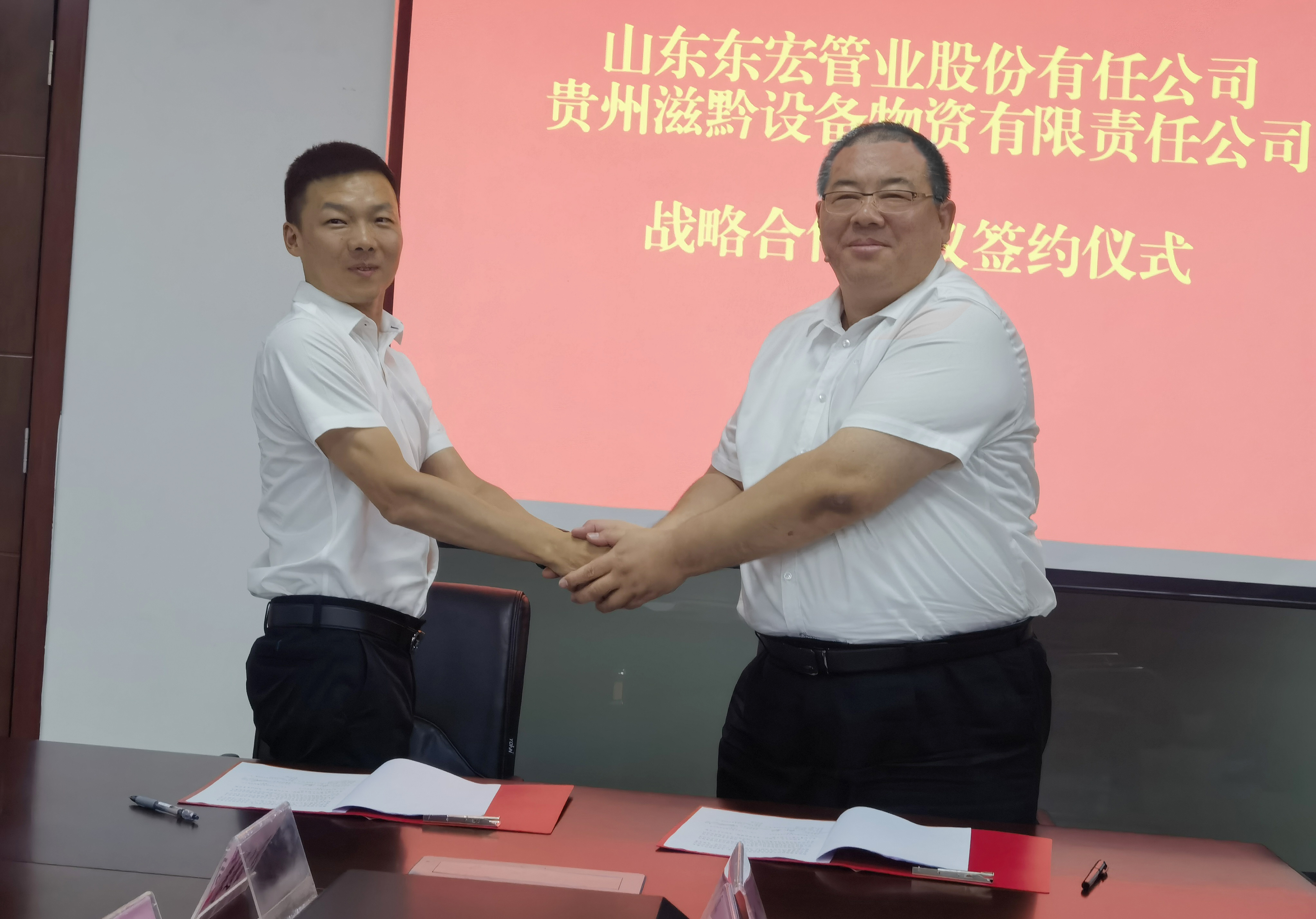 隨后,雙方針對戰略合作、投資建廠以及后期多元化發展等進行了深度探討,貴州水投集團滋黔物資公司副總經理郭毅與總裁倪奉堯代表雙方企業簽訂戰略合作協議。