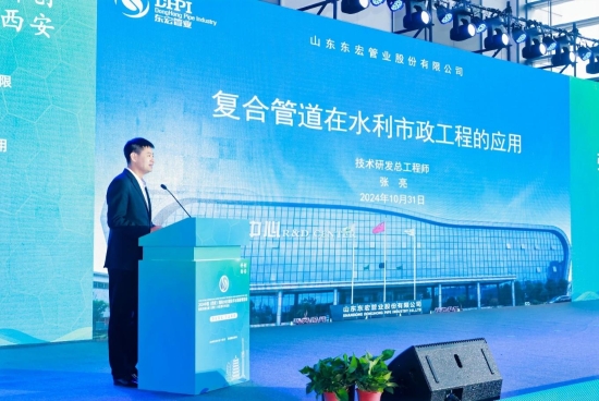 展會期間,東宏股份研發(fā)中心主任工程師張亮受邀參加了“城鎮(zhèn)水系統(tǒng)優(yōu)化與智慧運維”論壇,發(fā)表了題為《復(fù)合管道在水利市政工程的應(yīng)用》的主題報告。他詳細介紹了東宏股份的發(fā)展歷程、輝煌成就以及公司產(chǎn)品的優(yōu)越性能和卓越品質(zhì),并分享了產(chǎn)品在實際應(yīng)用場景中的成功案例,不僅展示了東宏股份的技術(shù)實力,也進一步提升了東宏品牌的知名度和影響力。